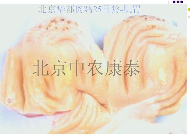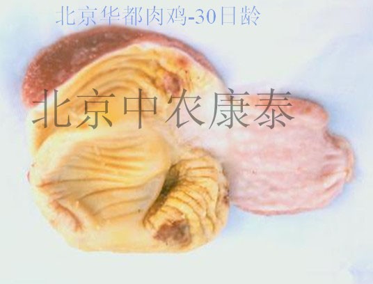1、临床症状:14-30天鸡群普遍拉黄色粪便,食欲部振,喜食饲料细末,生长缓慢,死淘率低。料肉比高,达到2.3:1或2.4:1