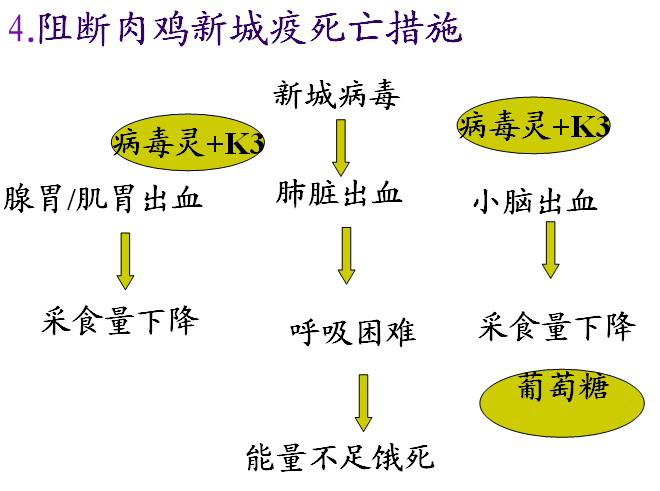 特效药:中农普救康(150克/1000只); 中农瘟克 (250毫升/1000只)改善采食量:添加薄荷油,按1-2毫升/1000只饮水。